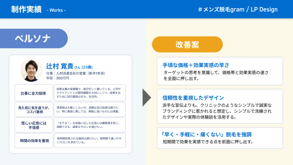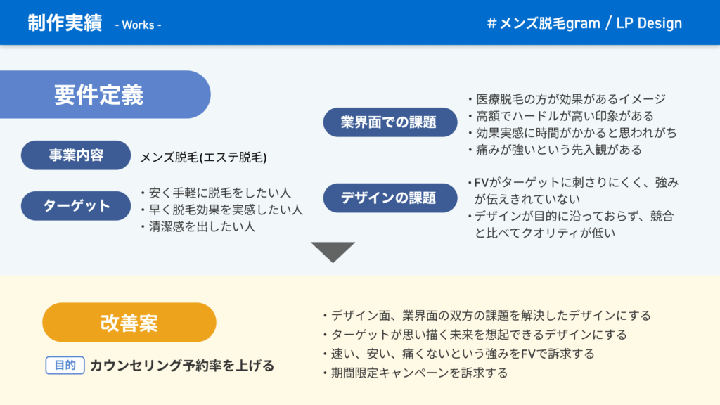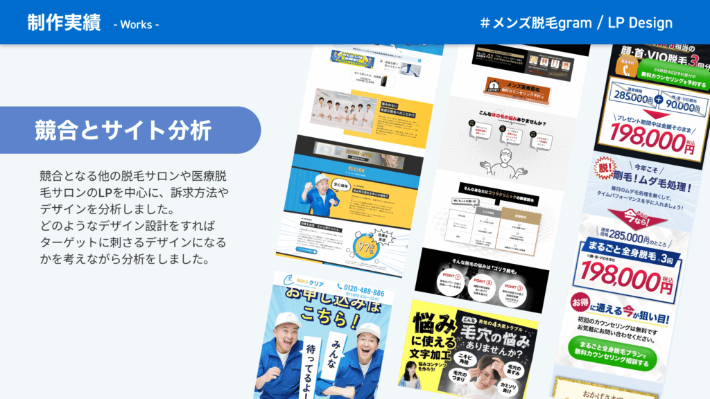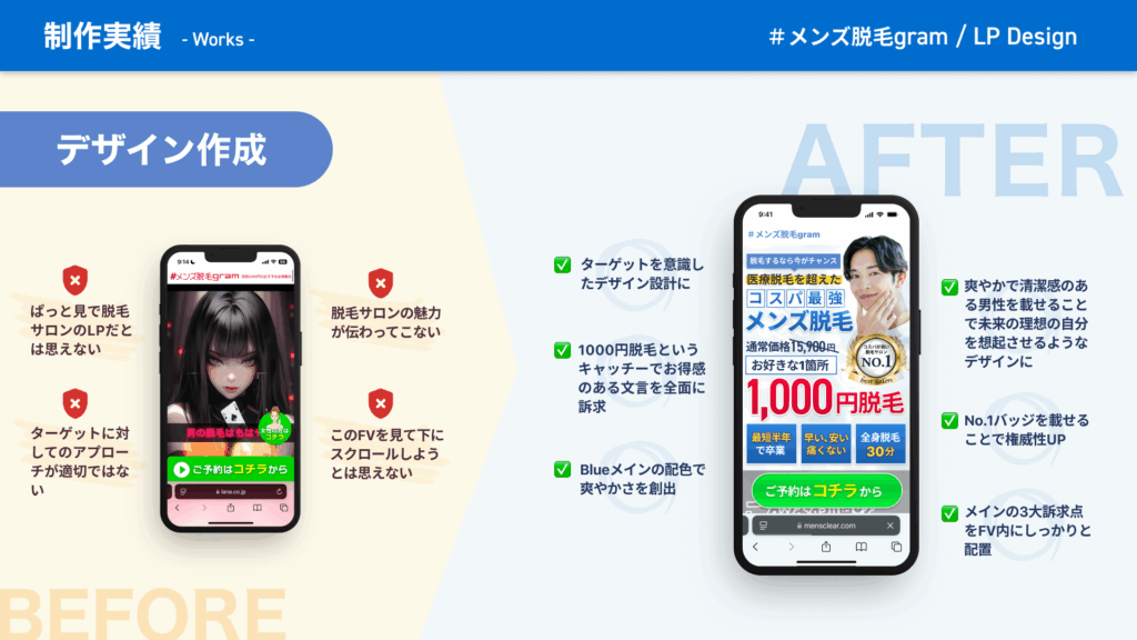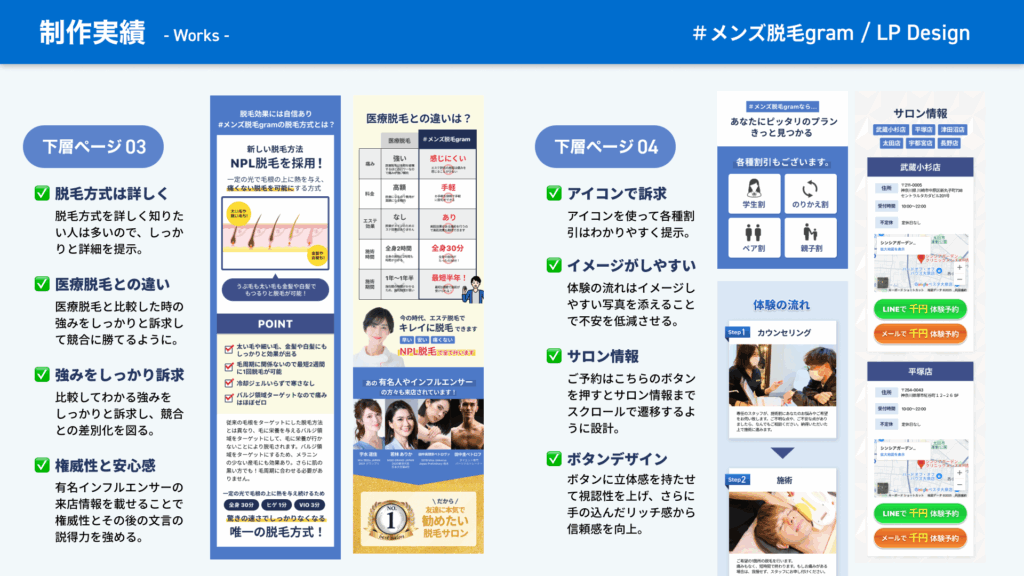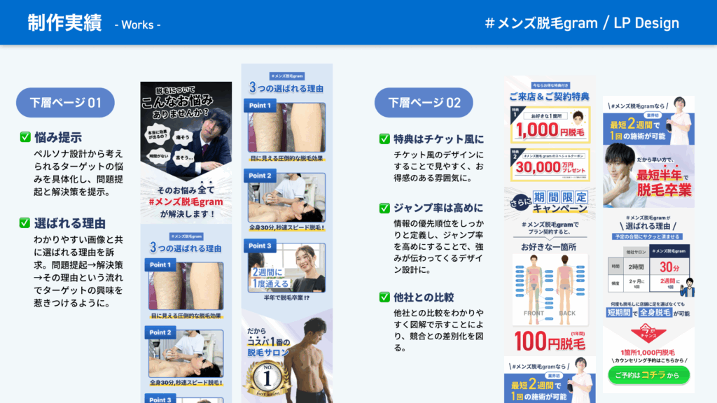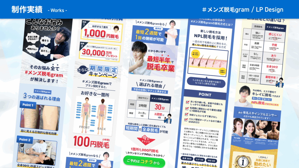 LPデザインの自主制作として脱毛サロンのLPを作成しました。